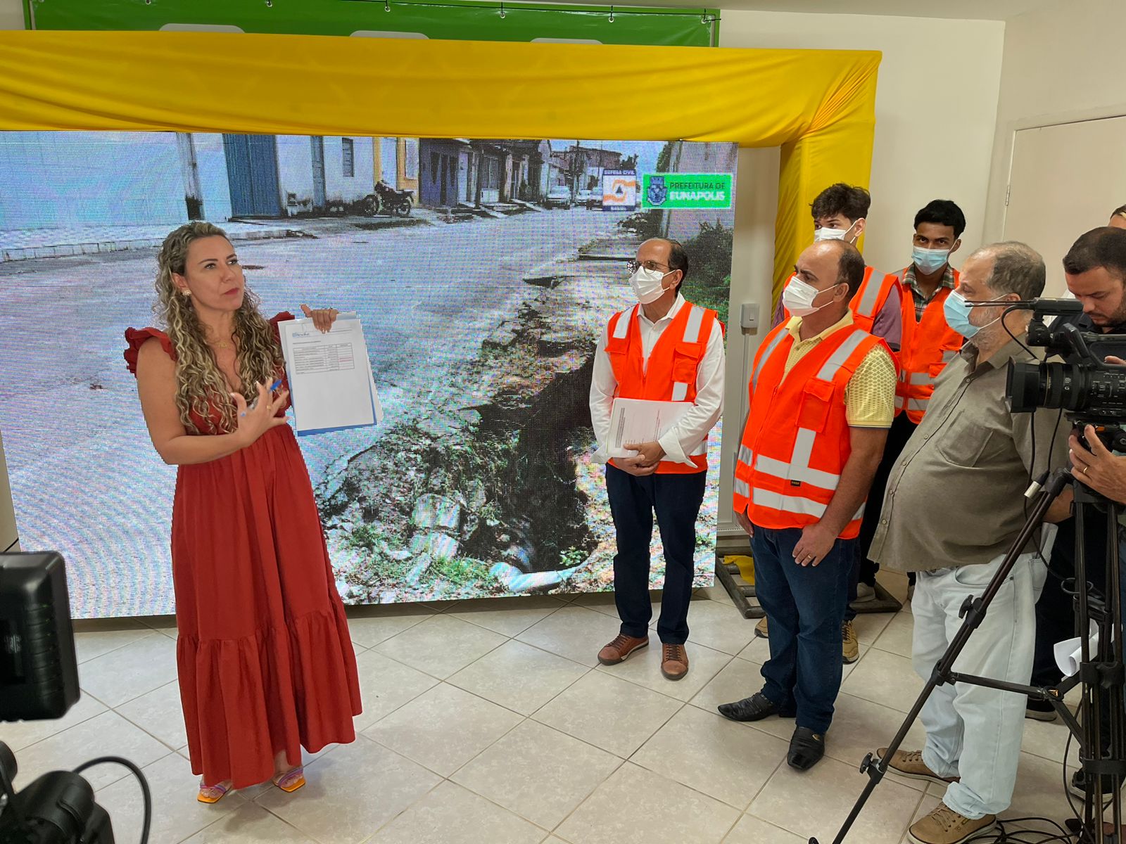 Em seu pronunciamento, a prefeita destacou a dificuldade enfrentado pelo município, o qual possui cerca de 140 mil habitantes, entretanto apenas 8% da população possui esgotamento sanitário. Córdelia frisou que todos os investimentos realizado no município para recuperar os danos causados pelas chuvas são de recursos próprios, entretanto, para atender toda a demanda, Eunápolis precisa de apoio dos governos, federal e estadual.