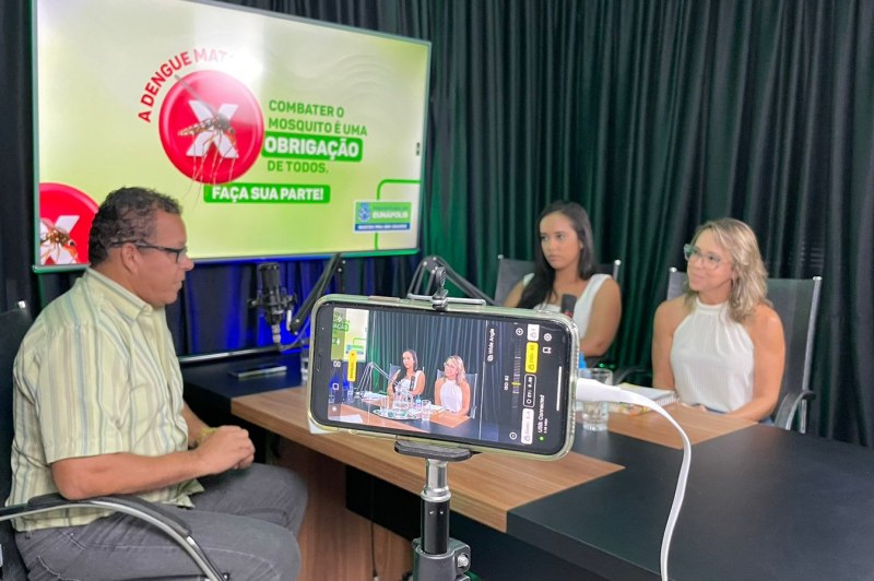 O combate ao mosquito Aedes Aegypti - transmissor da dengue, chikungunya, zika e febre amarela – foi o foco da quarta edição do “Eunápolis Pod+”, podcast oficial do Município, na tarde desta segunda-feira (13). O programa, apresentado por Washington Teixeira, recebeu como convidados a secretária de Saúde, Pâmela Dadalto, o médico infectologista André Baptista e a gestora de Vigilância em Saúde, Katiane Laurentino.