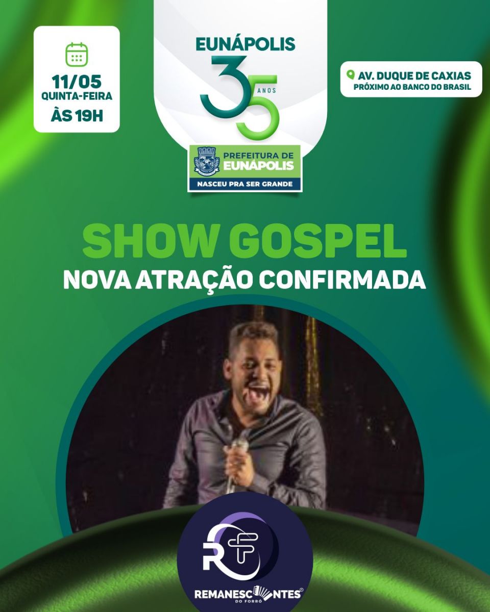 A prefeitura de Eunápolis divulgou nesta segunda-feira (08) duas novas atrações para a programação festiva em comemoração aos 35 anos de emancipação política do município.