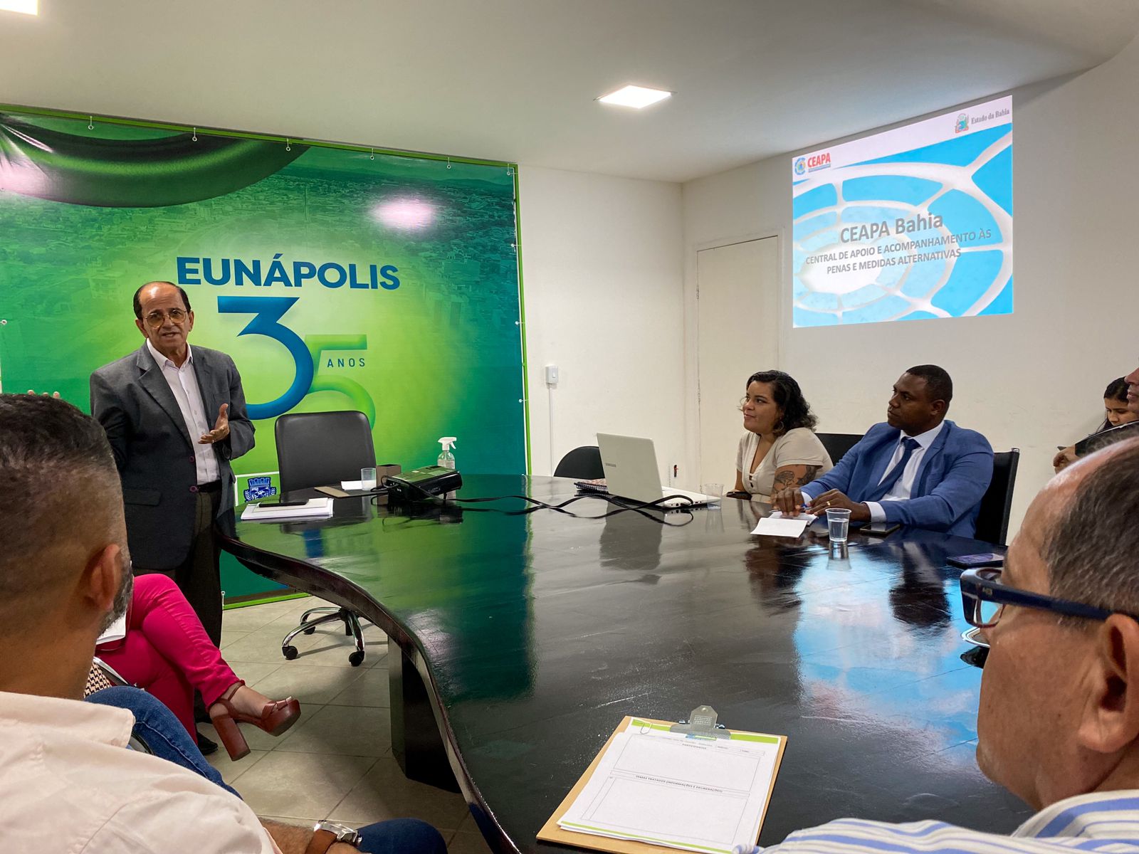 Na noite de quinta-feira (13), uma reunião importante ocorreu no gabinete da prefeitura de Eunápolis para discutir a implantação de uma Central de Penas Alternativas (CEAPA) no município. O objetivo dessa iniciativa é resgatar a cidadania de pessoas que cumprem penas e medidas alternativas, proporcionando-lhes oportunidades de reinserção social.