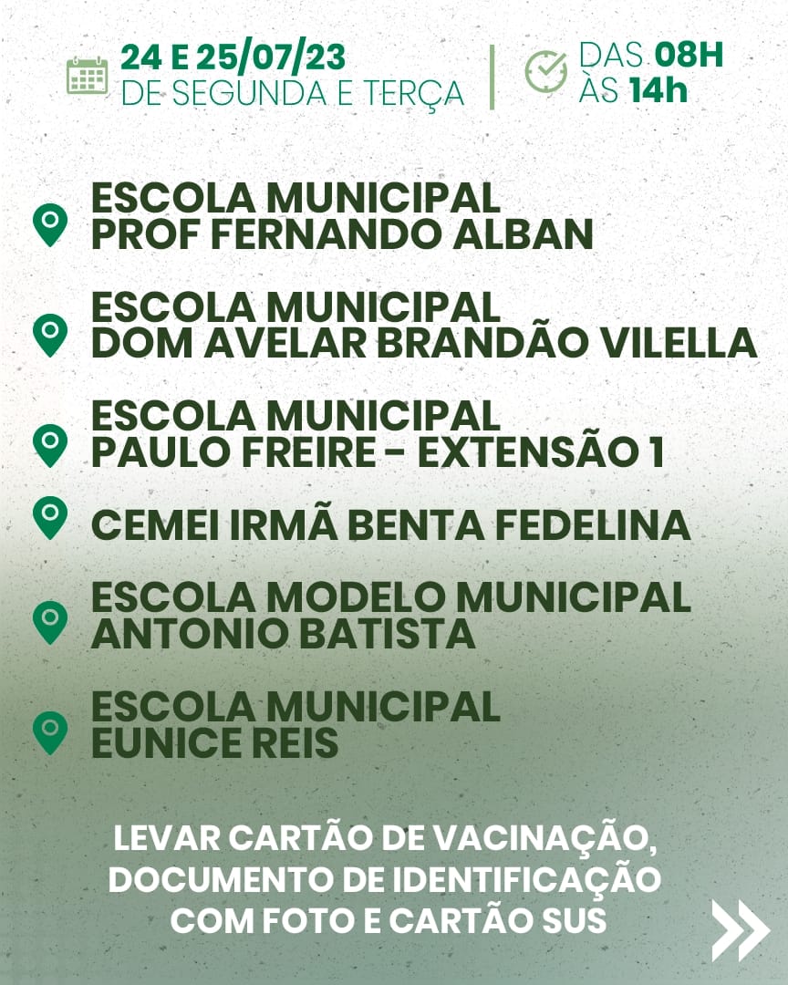 "A iniciativa busca otimizar o atendimento à população e evitar aglomerações, oferecendo uma janela de tempo de quatro dias para que os beneficiários do programa Bolsa Família possam comparecer a uma das escolas indicadas e atualizar suas informações de vacinação", frisou a secretária de Assistência Social, Néia Torres.