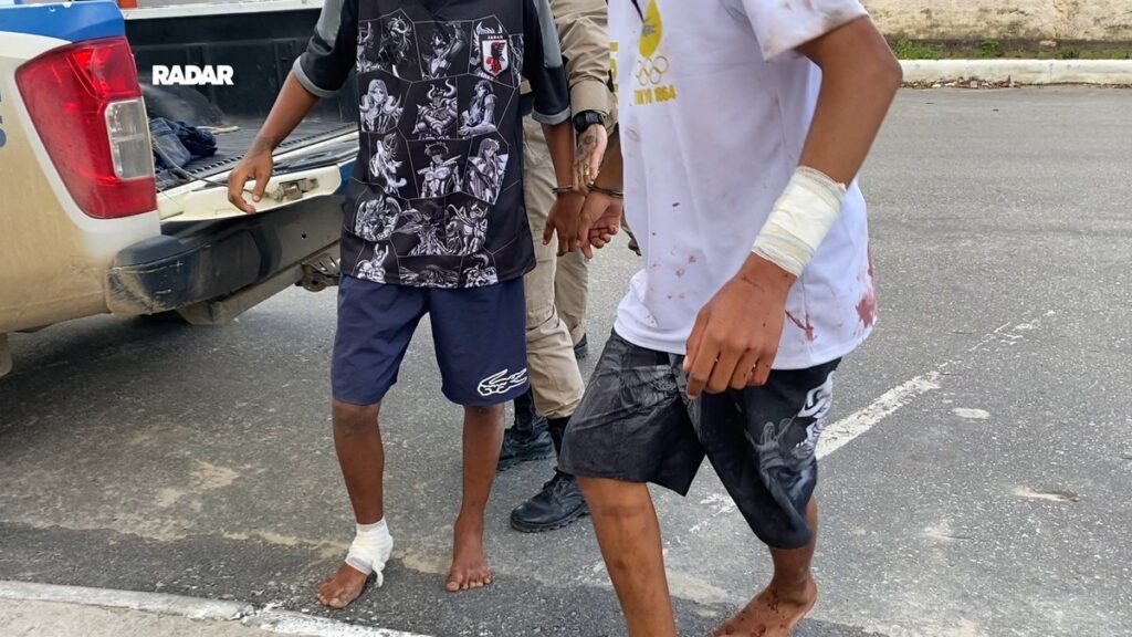 A quadrilha abandonou o carro no local com as portas abertas e fugiu a pé. Policiais militares do Peto realizaram rondas pelas imediações e apreenderam dois adolescentes, de 15 e 17 anos, baleados no pé e no braço. Um terceiro envolvido, idade ainda não confirmada, foi levado para o Hospital Regional com uma perfuração no tórax.