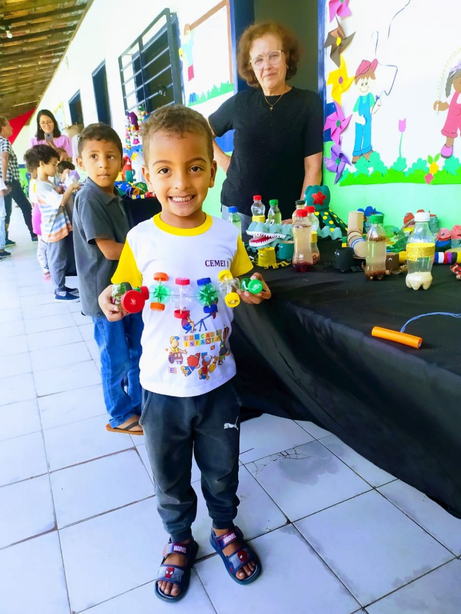 Um dos destaques da Semana do Brincar foi a confecção de brinquedos utilizando materiais recicláveis. Os alunos do CEMEI I tiveram a oportunidade de aprender a reutilizar materiais descartáveis, demonstrando a importância da sustentabilidade e do cuidado com o meio ambiente desde a infância. “O brincar é fundamental na formação escolar das crianças, e todas as turmas da instituição foram envolvidas em ações pedagógicas que enalteceram essa prática lúdica”, enfatizou a coordenadora Iris de Fátima Brito.
