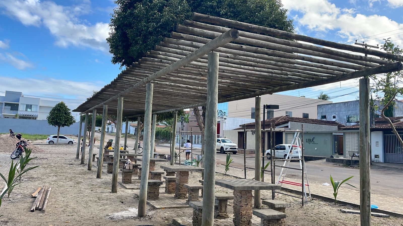 A revitalização abrangeu diversas melhorias. O pergolado foi completamente renovado, fornecendo não só uma estética melhor, mas também um espaço sombreado para encontros. O parquinho infantil foi aprimorado com areia adequada e condições seguras para brincadeiras.