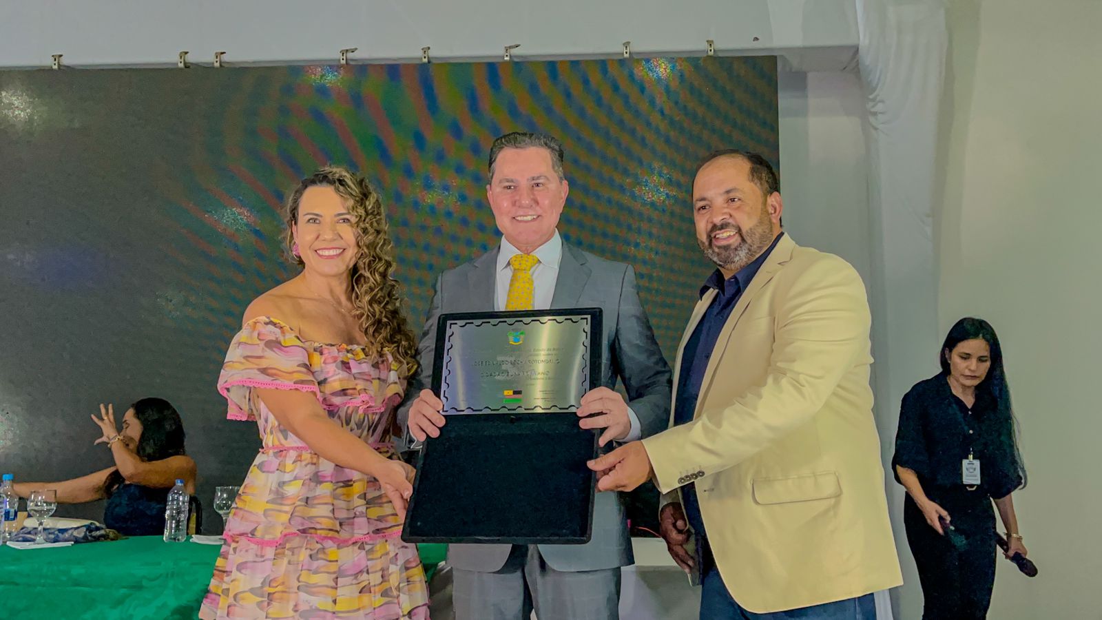 OUTROS TÍTULOS - A solenidade também homenageou pessoas que prestam serviços importantes para o município de Eunápolis. Seis pessoas foram contempladas, dentre elas, o desembargador José Edivaldo Rotondano e a mãe da prefeita, Gizélia Torres de Almeida.