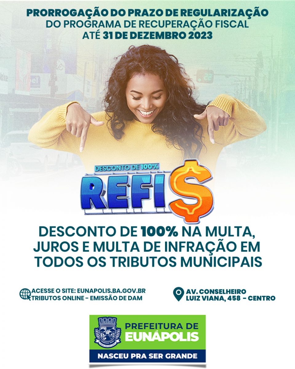 A prefeita de Eunápolis, Cordélia Torres, tomou uma medida significativa para os munícipes com dívidas fiscais com a cidade. Foi sancionada a lei n° 1.405, que prorroga o prazo do Programa de Recuperação Fiscal (REFIS) até 31 de dezembro de 2023. Essa decisão proporciona aos cidadãos a oportunidade de regularizar seus débitos com o município.