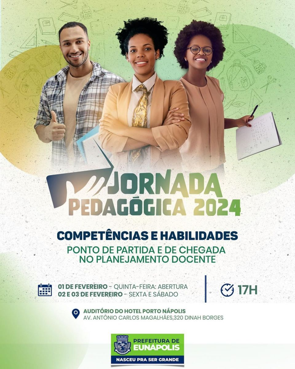 A prefeitura de Eunápolis realizará a abertura da Jornada Pedagógica 2024 na tarde desta quinta-feira (1°), no auditório do Hotel PortoNápolis, com a presença da prefeita Cordélia Torres. Com o tema "Competências e Habilidades: Ponto de Partida e Chegada do Planejamento Docente", o evento visa explorar estratégias educacionais que impulsionem resultados positivos e a construção de valores sólidos para a educação de Eunápolis.