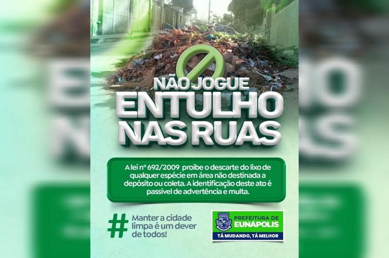 A prefeitura de Eunápolis está intensificando a fiscalização para garantir que as calçadas da cidade permaneçam desobstruídas durante obras de construção. É ilegal descartar entulhos nas vias públicas, conforme estabelece a Lei Municipal n° 409/2001 em seu Artigo 16, visando manter a cidade limpa e organizada.