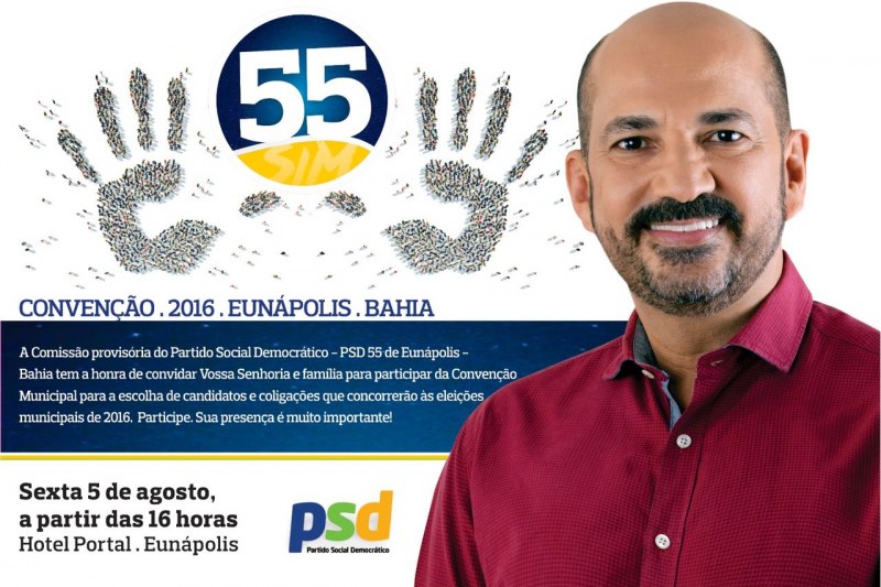 A Convenção Municipal do PSD e partidos aliados está prevista para acontecer nesta sexta-feira [05], no Salão de Convenções do Hotel Portal, no Bairro do Pequi, em Eunápolis.
