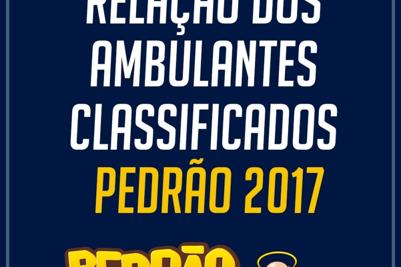 A Prefeitura de Eunápolis divulgou, no Diário Oficial desta segunda-feira (12/06), a lista com os nomes dos ambulantes que vão atuar no circuito do Pedrão 2017. Os classificados foram definidos neste sábado 10/06, pela Comissão do Pedrão 2017 - definida pelo Decreto Nº 6851 de 10/05/17 - que após analisar os candidatos aptos - considerando o atendimento às determinações do Decreto Nº 6885 – sorteou as categorias em que o número de inscritos excedia o número de vagas.