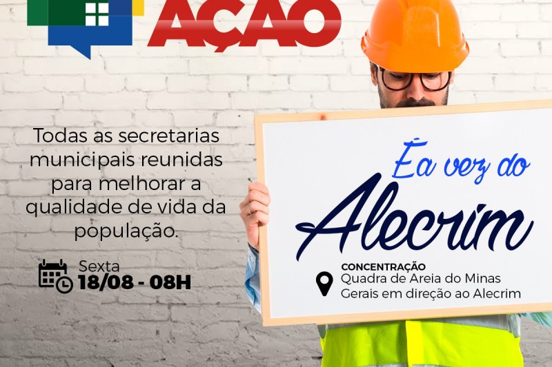 De acordo com o chefe de Gabinete, Jairo Jr., a concentração acontecerá na Quadra de Areia do bairro Minas Gerais, para que todas as ações possam seguir desde a ladeira que liga os dois bairros até o fim do Alecrim. "Nossas equipes preparatórias já estão no bairro conscientizando a população para o nosso Dia D. Quem tiver lixo e entulho pode colocar nas portas que estaremos recolhendo tudo. O prefeito Robério determinou uma ação geral com força total", explicou Jairo Jr.