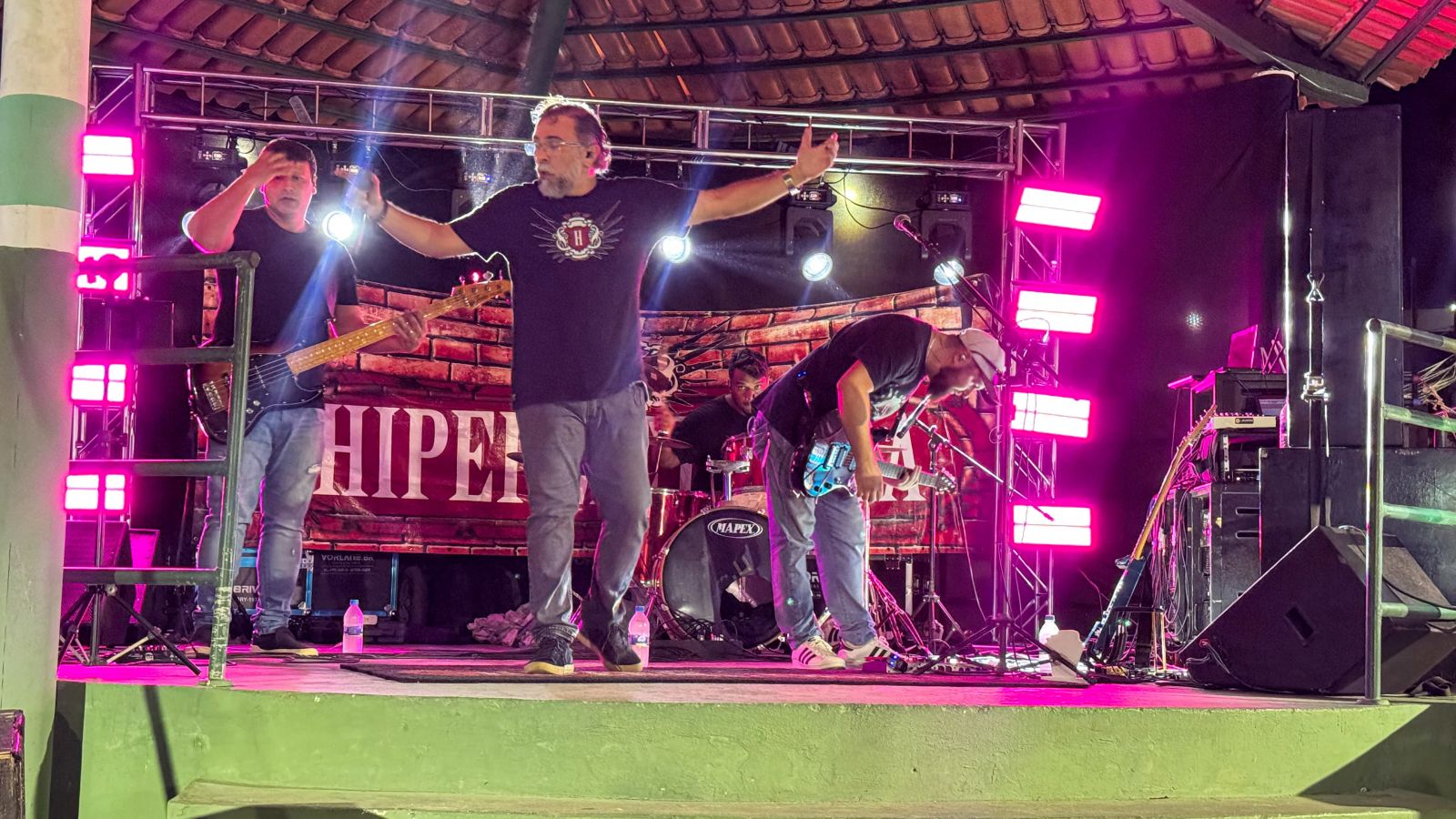 Ainda no sábado, a programação cultural foi enriquecida com uma apresentação de capoeira, que destacou a tradição e a força dessa expressão artística e esportiva. A noite seguiu com o show da banda Hipermetropia, que levou muito rock para a praça, animando o público com um repertório cheio de energia.