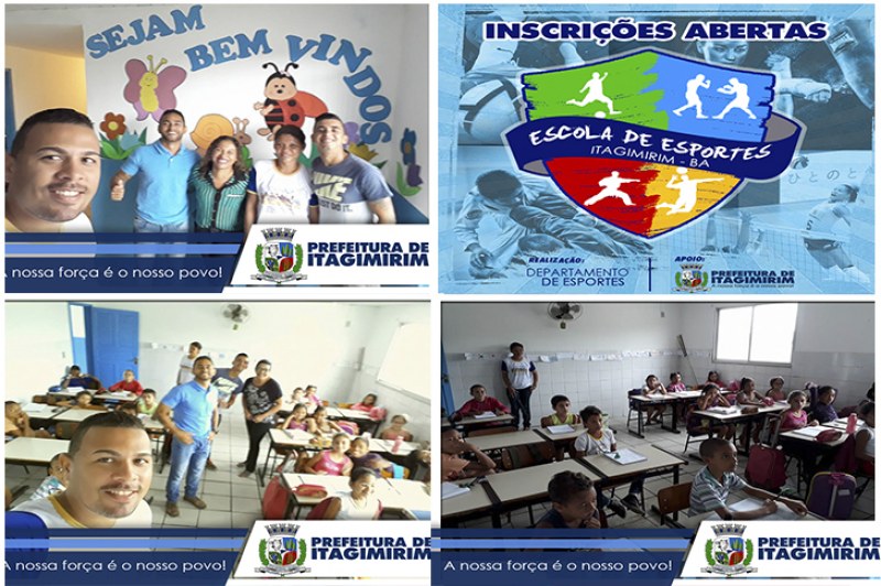 A Prefeitura de Itagimirim, por meio do Departamento de Esportes em parceria com a Secretaria de Educação Municipal, está apresentando em toda rede de ensino o mais novo projeto nomeado de Escola de Esportes. O projeto Escola de Esportes proporcionará para crianças, adolescentes e jovens de Itagimirim, com idade entre 4 a 17 anos a pratica de modalidades esportivas.
