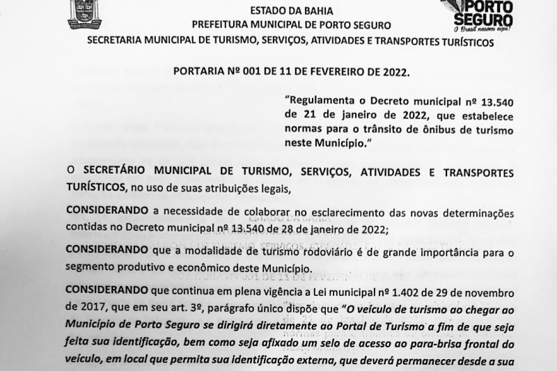 "Para que isso ocorra da melhor forma, foram discutidos com o trade hoteleiro alguns pontos e considerandos do decreto para dirimir dúvidas sobre o cumprimento do decreto", disse ainda Paulo César, complementando que os passeios e city tour poderão ser feitos, sendo que os veículos farão desembarque e de deslocarão para o estacionamento do hotel ou para a central de transbordo.