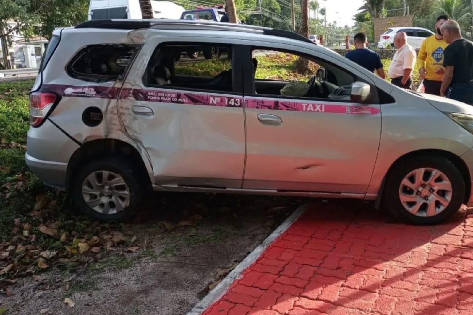 O táxi, um Chevrolet Spin, Registro Municipal 143 - Praia do Muta, teve sua lateral completamente destruída, felizmente, apesar da gravidade da colisão, não ouve vítimas fatais. O trânsito no local ficou lento por conta de curiosos que passavam pelo local.