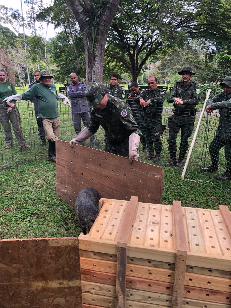 Policiais militares da CIPPA/Porto Seguro, componentes do Corpo de Bombeiros, seguranças da GPS e IBAMA participaram nesta quinta-feira (26/05) de um curso de educação e capacitação para manejo, captura e soltura de animais silvestres. A instrução foi ministrada pelo Sr. Cid, biólogo do Centro de Triagens de Animais Silvestres (CETAS).
