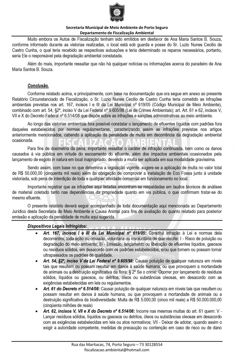 Durante a inspeção, foi identificado que todos os dejetos descartados de forma criminosa, saiam daquele condomínio, o qual, apesar de ser de alto padrão, não existe rede de esgoto e sim fossas sépticas. Na operação, agentes da Secretaria Municipal de meio Ambiente, lavrou um auto de infração e multa em desfavor a um morador do condomínio. Veja abaixo, decisão na íntegra.