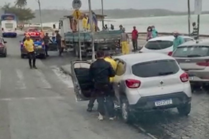 Nas imagens, é possível ver os agentes tentando retirar à força o condutor de dentro de um veículo estacionado, sob alegação de que estava fazendo transporte clandestino de lotação.