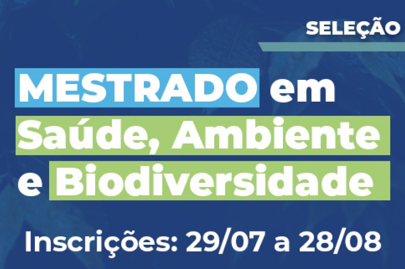Interessados em cursar o mestrado acadêmico do Programa de Pós-graduação em Saúde, Ambiente e Biodiversidade (PPGSAB) devem preparar a documentação requerida no edital. O processo seletivo está aberto a inscrições até o dia 28 de agosto. As inscrições serão feitas exclusivamente online, pelo link, incluindo taxa de inscrição no valor de R$ 50,00 (cinquenta reais). Os documentos devem ser enviados em PDF, com nomes de arquivo de até 15 caracteres, sem acentos ou cedilha.