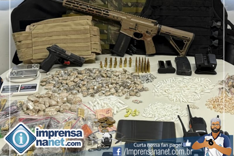 A ocorrência foi registrada na delegacia territorial do Distrito, que ficará responsável pela investigação. Na ação, foram apreendidos um fuzil calibre 5,56, uma pistola calibre .380, carregadores, munições, três coletes balísticos, rádios comunicadores, celulares e um tablet. Também foram encontrados dois veículos, além de grande quantidade de drogas: 319 buchas de maconha, 415 pinos de cocaína, 245 pedras de crack, 40 buchas de haxixe e 15 porções de drogas sintéticas.