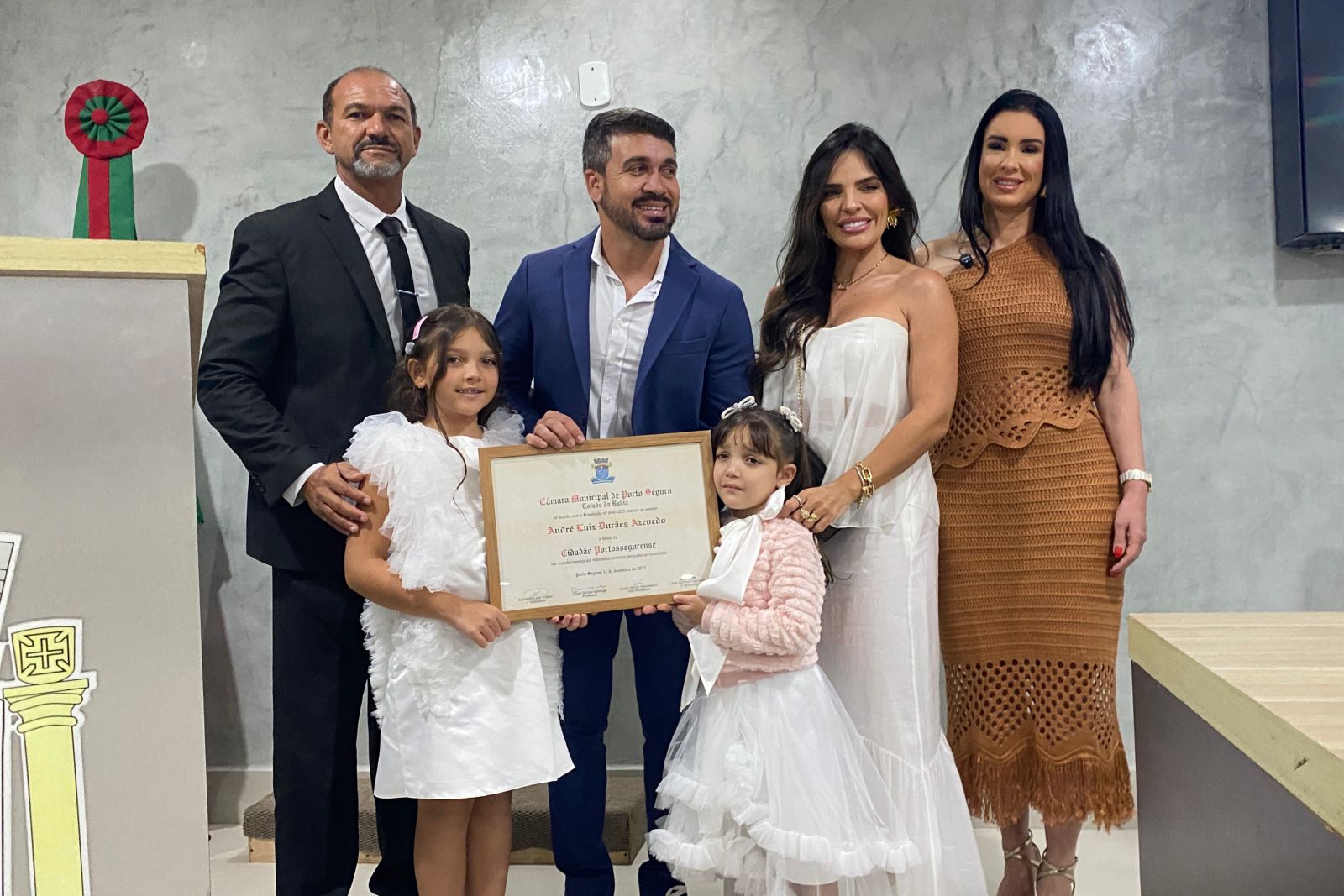 Pai de duas meninas, filho e marido, André se mostrou muito feliz, ao receber a honraria, e determinado a continuar com o trabalho de fortalecer a imagem de Porto Seguro no cenário de eventos matrimoniais e também contribuir para o desenvolvimento do município.
