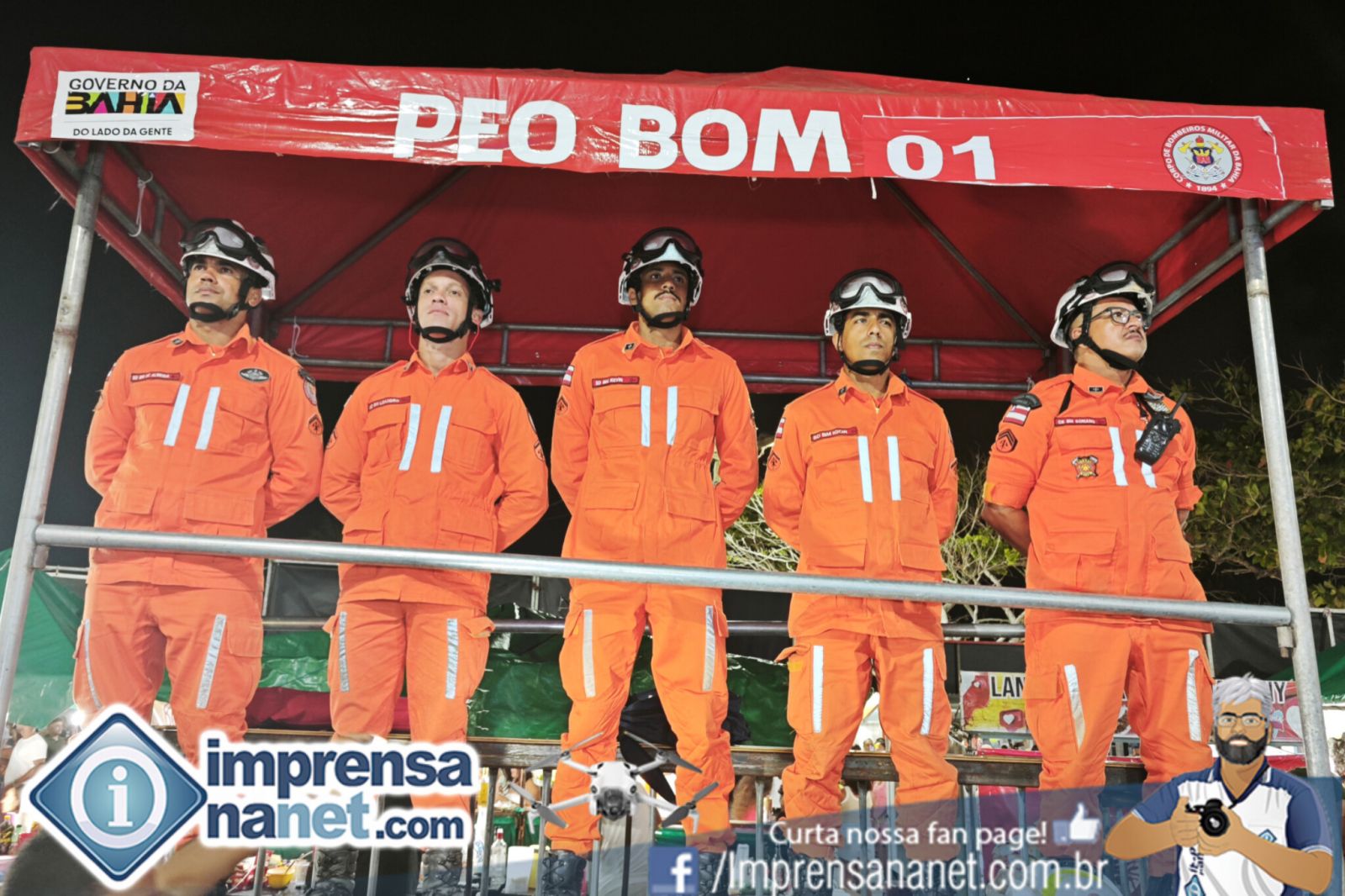 Segurança reforçada e visível: A tranquilidade da noite contou com forte atuação das forças de segurança, incluindo guarnições do 8º Batalhão da Polícia Militar e equipes da Polícia Civil da Bahia, posicionadas estrategicamente ao longo do circuito.