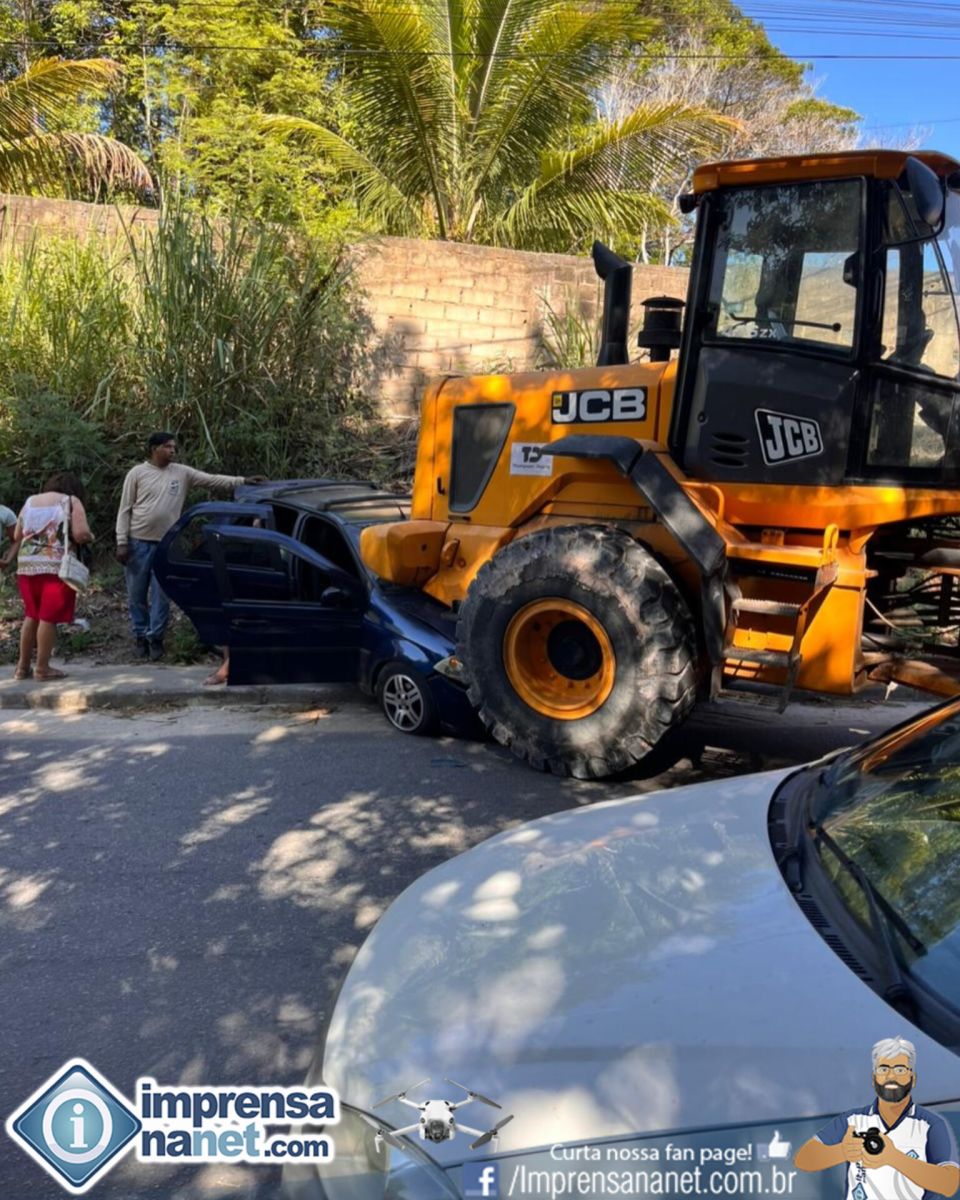 - Segundo testemunhas, uma retroescavadeira realizava manobra em marcha ré quando um veículo de passeio, modelo Fiat Palio, tentou desviar sem aguardar a conclusão da operação. O automóvel acabou sendo atingido pelo maquinário pesado.