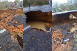 BAHIA | Buraco se abre na rodovia entre os municípios de Araci e Tucano, interior da Bahia
