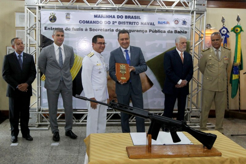 A Secretaria de Segurança Pública do Estado (SSP) reforçou, na manhã desta terça-feira (25), o armamento das Polícias Civil e Militar, com equipamentos doados pela Marinha do Brasil, por meio do Comando do 2º Distrito Naval. Em cerimônia com a presença do governador Rui Costa, realizada na sede do comando, no Comércio, em Salvador, foram entregues 100 fuzis automáticos leves e 200 carregadores.