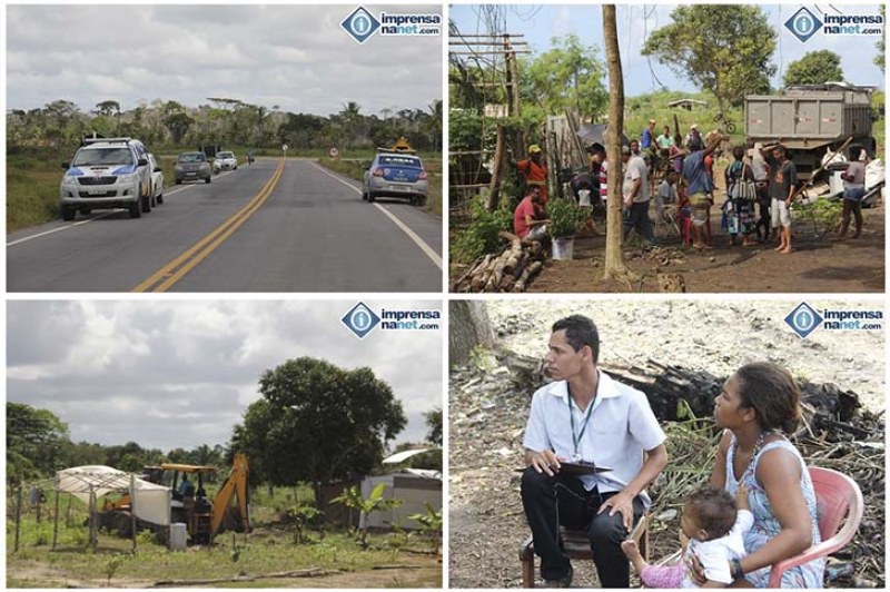Ação conjunta entre as Sec. de Serviços Públicos, Sec. do Trabalho e Desenvolvimento Social e Polícia Militar desarticula invasão no entorno do Anel viário em Porto Seguro. Segundo informações, na área que é do município, será construída a nova Rodoviária da cidade.