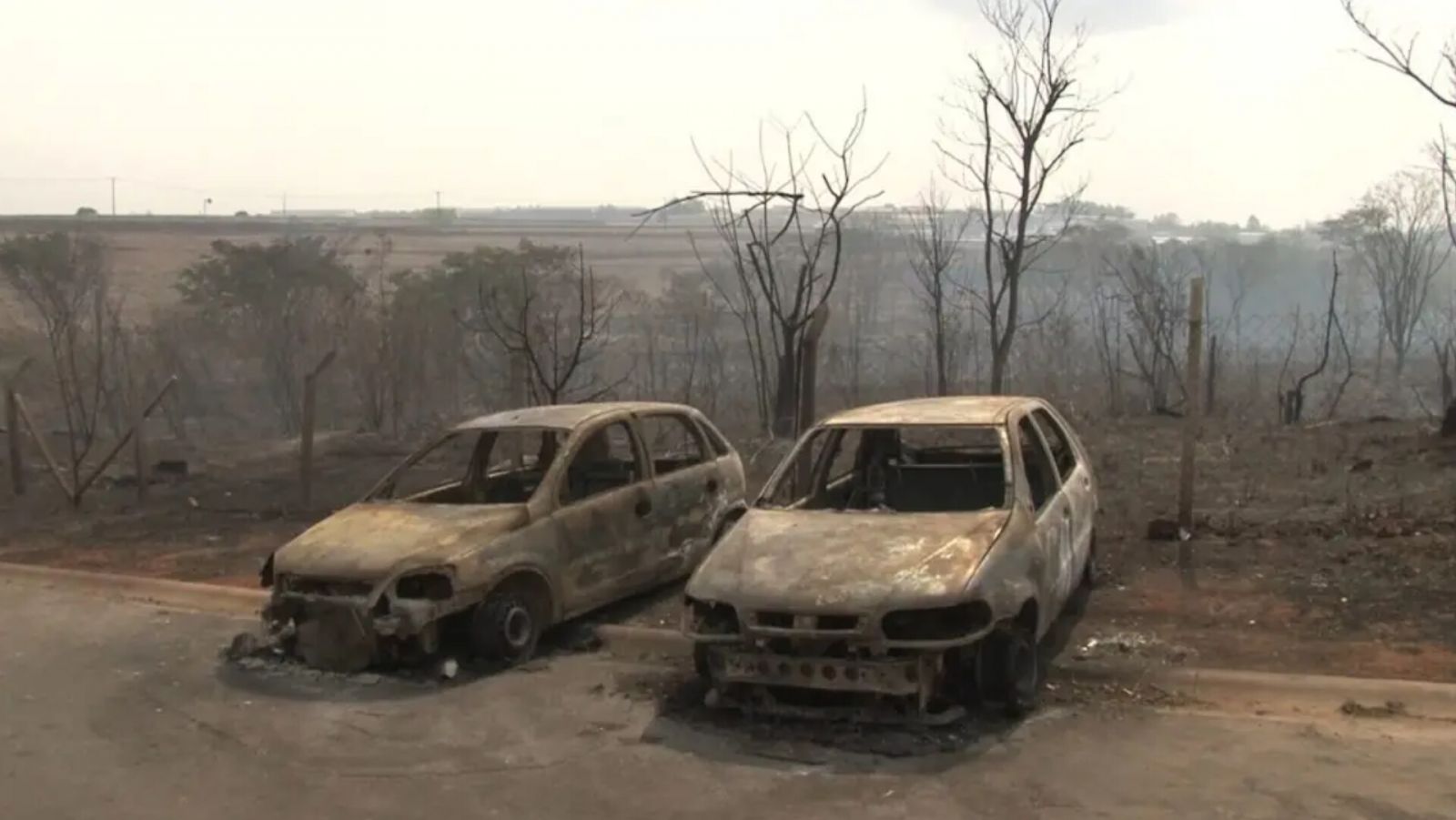 Vários carros foram atingidos pelas chamas após o incêndio. No momento do fogo, um morador tentou controlar as chamas utilizando um extintor.