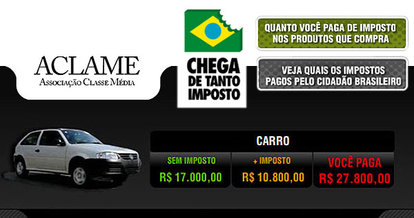Isso é, se você para em um posto e abastece R$100,00 de gasolina, na realidade só colocou R$43,91 de combustível. Os outros R$ 56,09 foram para o Estado (em seu sentido amplo). Logo, se você ganha R$ 3.000,00 líquidos por mês, com base naqueles dados anteriores, seu poder de compra será de apenas R$ 1.800,00. Os outros mil e duzentos você nem viu.