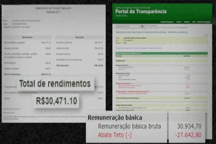 A Casa Civil deu um parecer negando o pedido da ministra, e enviou o caso ao ministério do Planejamento, que ainda não deu um parecer final. Comprovante do salário de desembargadora aposentada recebido por Valois (esquerda); e comprovante do salário recebido no cargo de ministra (direita).