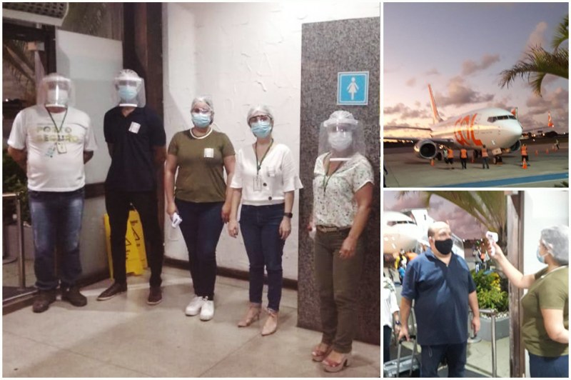 Na da tarde deste domingo 14/06, equipes da Secretaria de Saúde "Vigilância Sanitária" e Sectur, estiveram no Aeroporto Internacional de Porto Seguro para recepicionar os passageiros do voo Gol. A "Barreira Sanitária" foi montada para receber e orientar a todos que chegam na cidade, bem como, atendimento e informações quanto ao distanciamento, medição de temperatura, triagem, disponibilizado álcool a 70% para higienização.