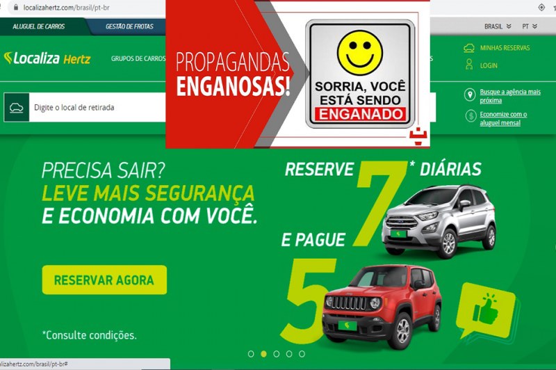 Na noite desta quarta-feira 08/07, ao fazer uma consulta para locação de veículo no site da empresa Localiza, uma ‘PROMOÇÃO EM DESTAQUE’ atraiu minha atenção, “Alugue 7 Diárias e pague 5". Para a referida promoção, a empresa disponibiliza o link abaixo;