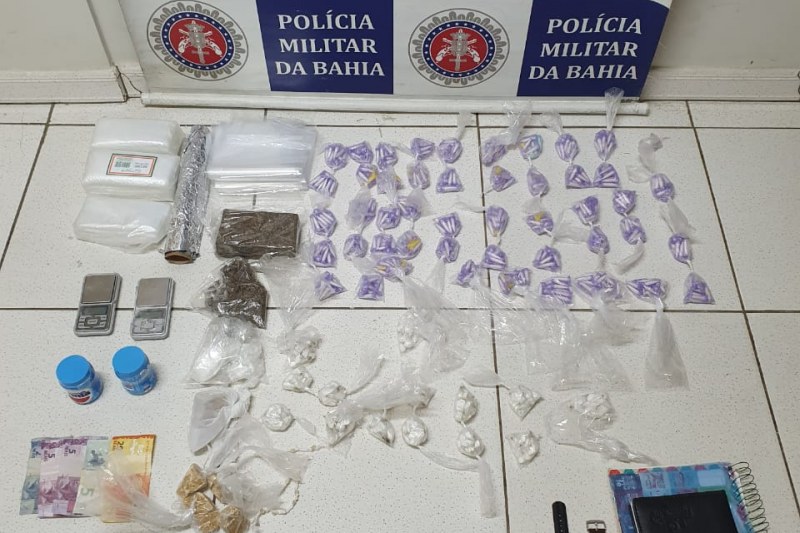 No local os policiais apreenderam, 672 papelotes de cocaína, 246 pedras de crack embaladas para venda, alem de outras 270 gramas também de crack, 28 gramas de maconha, 91 gramas de cocaína e, 02 balanças de precisão.