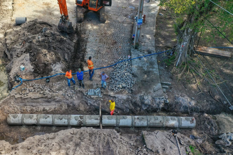 A primeira etapa desta intervenção contempla aproximadamente 400 metros de drenagem entra a Praça dos Pataxós e a Rua Pau Brasil, chegando até a altura da Rua do Telégrafo. A região apresenta constantes pontos de alagamentos, devido à diferença de níveis do terreno.