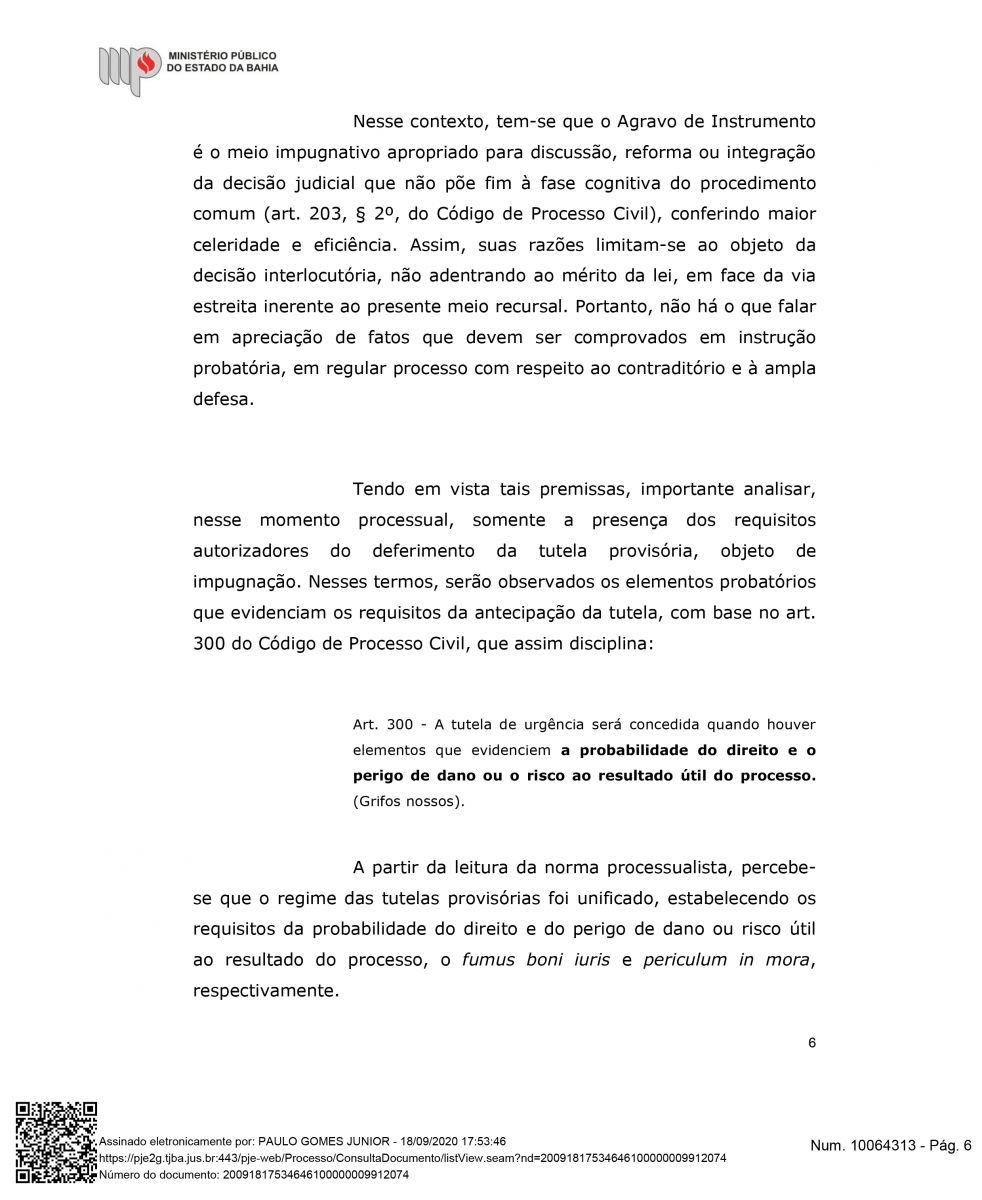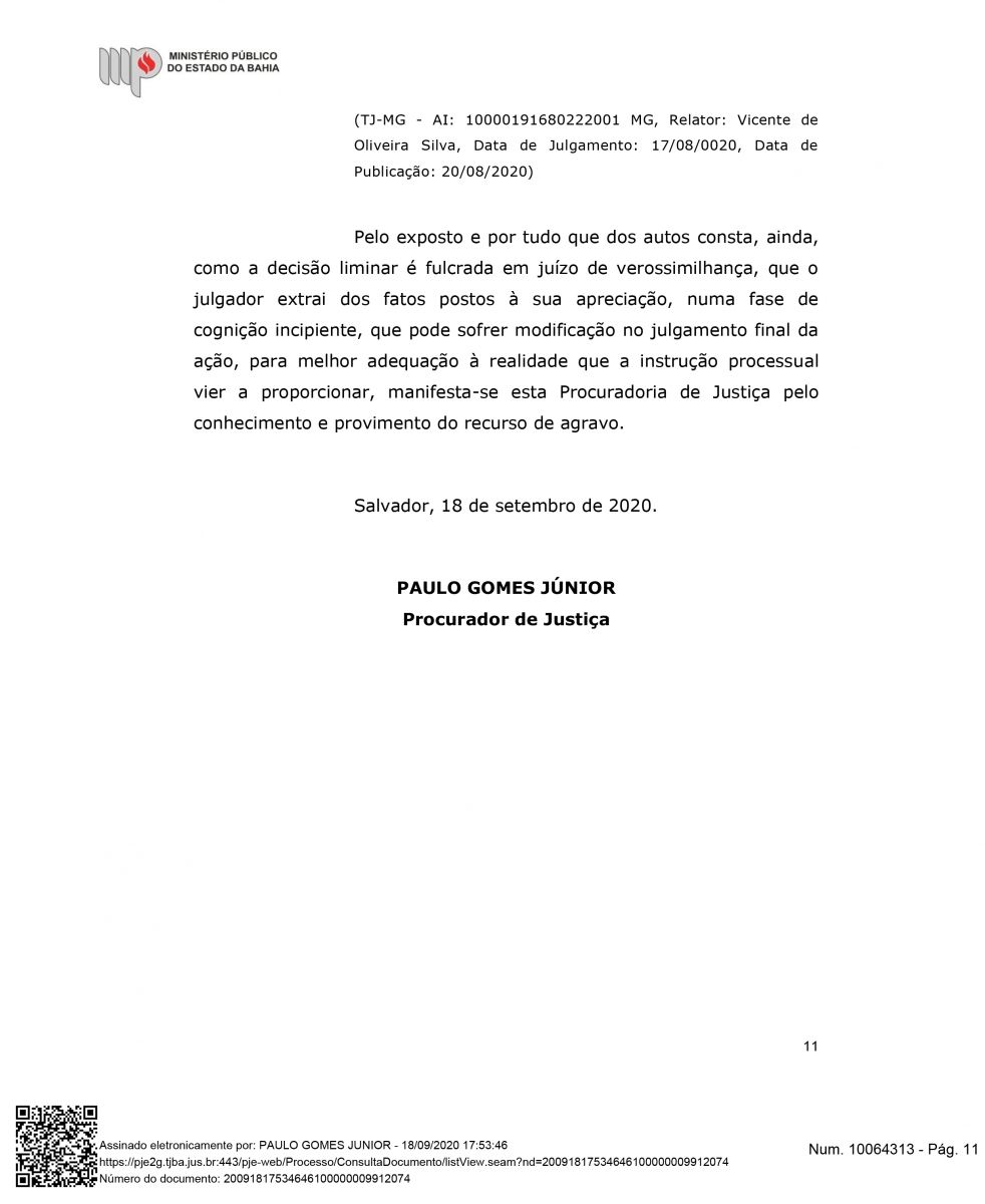 "Além do exito de impedir a retirada das famílias, esta semana Houve mais um desfecho favorável para a Associação Mangabeira, pois, o Ministérios Público Estadual deu parecer para o recebimento e provimento do agravo de instrumento, o que significa, que o MPBA entende a procedência interpostar por nós, ou seja, que este opinativo é favorável a permanência das famílias até o final do processo", declarou Drº Lourran Monteiro.