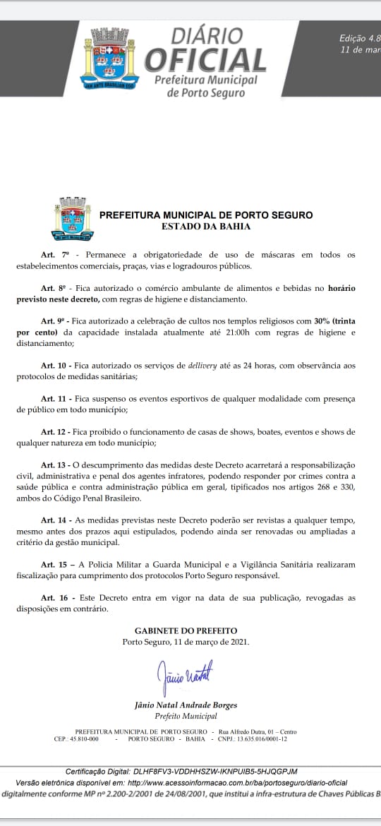 Buscando preservar a economia e a saúde da população, foi criado o selo “Porto Seguro Responsável”, que atende às medidas de segurança sanitária para a reabertura gradual e sustentada do turismo, do comércio e de atividades correlatas, em nosso município.