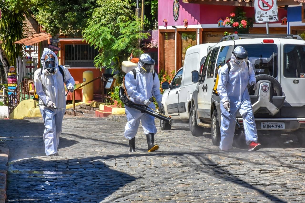 Foram realizados: aplicação de fumacê e sanitização dos estabelecimentos comerciais, além da testagem dos funcionários que atendem os turistas, com exames para detecção da Covid, atendimento médico para pessoas com sintomas respiratórios, tratamento precoce e profilaxia.