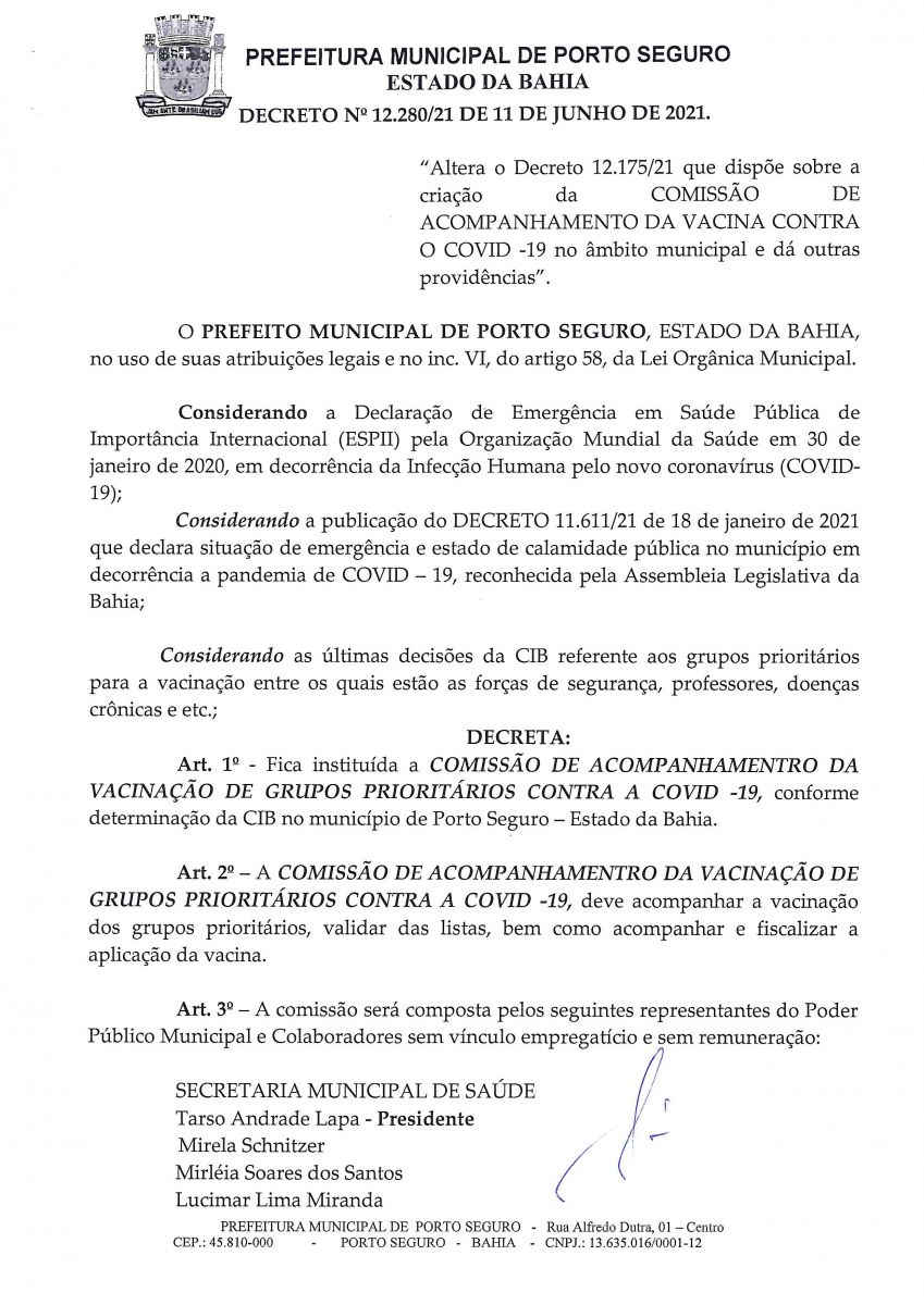 Seguindo orientação das últimas decisões da CIB, referente aos grupos prioritários para vacinação, entre os quais estão forças de segurança, professores e pessoas portadoras de doenças crônicas, o prefeito Jânio Natal, cria, através do Decreto Municipal Nº 12.280/21, a Comissão de Acompanhamento da Vacinação de Grupos Prioritários Contra a Covid-19. A referida comissão deve acompanhar a vacinação dos grupos prioritários, validar listas, bem como fiscalizar a aplicação da vacina.
