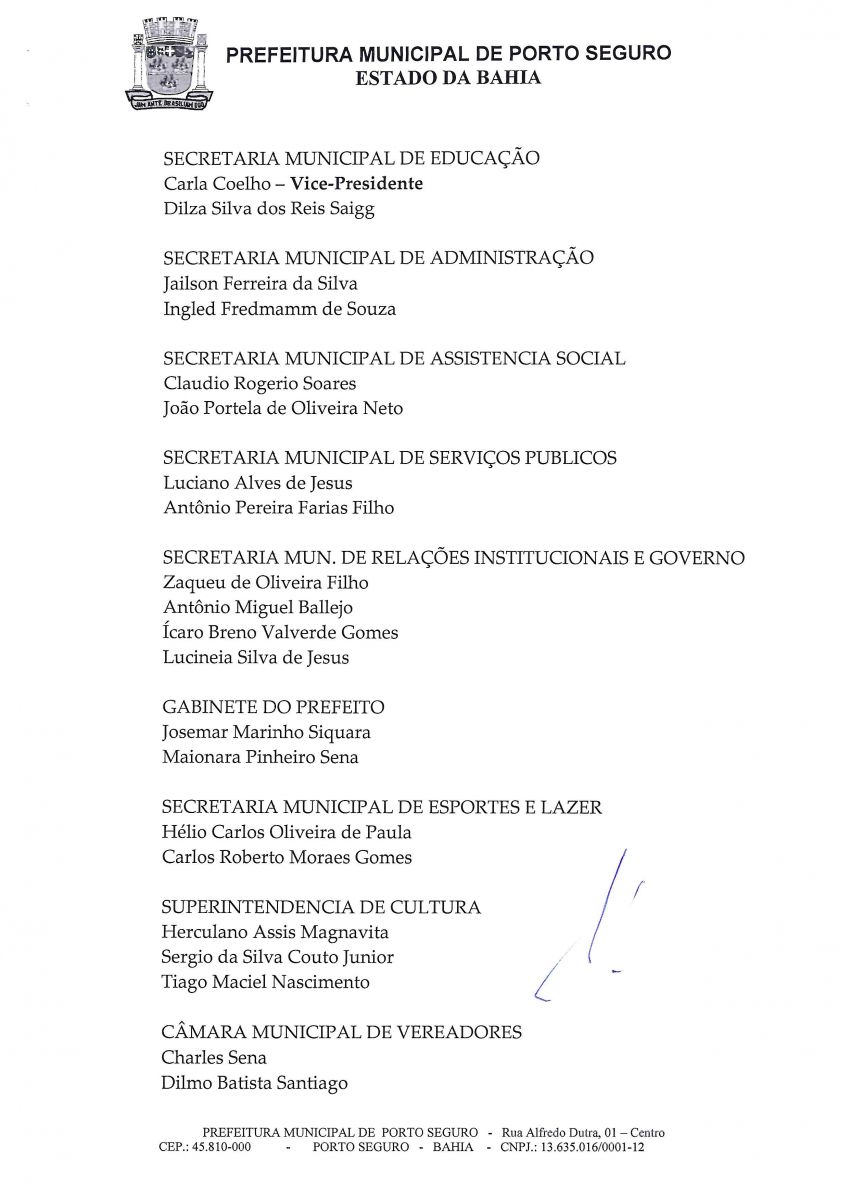 A comissão será composta por representantes de várias secretarias do governo municipal, Câmara de Vereadores, bem como, colaboradores sem vínculo empregatício e sem remuneração;