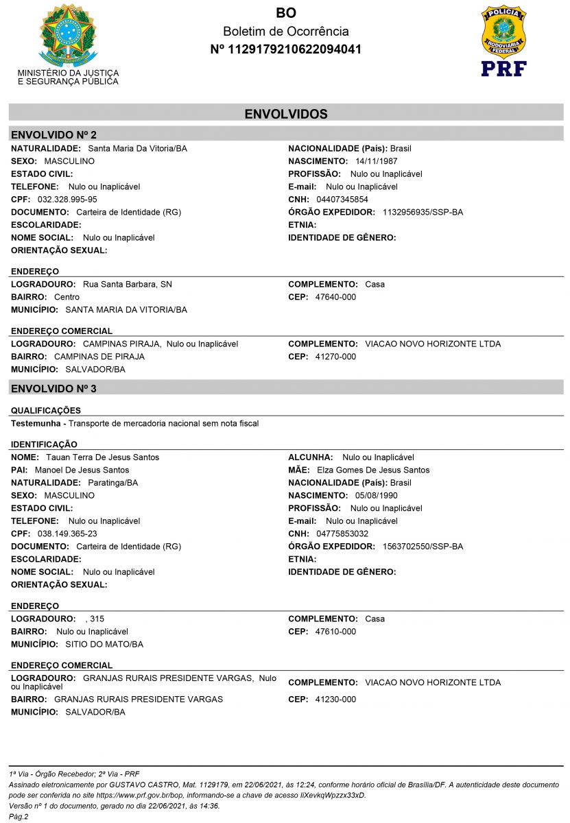 No final da tarde desta quarta-feira 23/06, a reportagem do Imprensananet.com teve acesso ao Boletim de Ocorrência da PRF de Goias, e, ao contrário do que foi erroneamente vinculado em um site local, não há portosegurenses envolvidos. Veja abaixo os nome e cidade de origens e endereço da pessoa presa por envolvimento no caso e de duas testemunhas da operação que apreendeu mais de 100 mil reais em medicamentos.