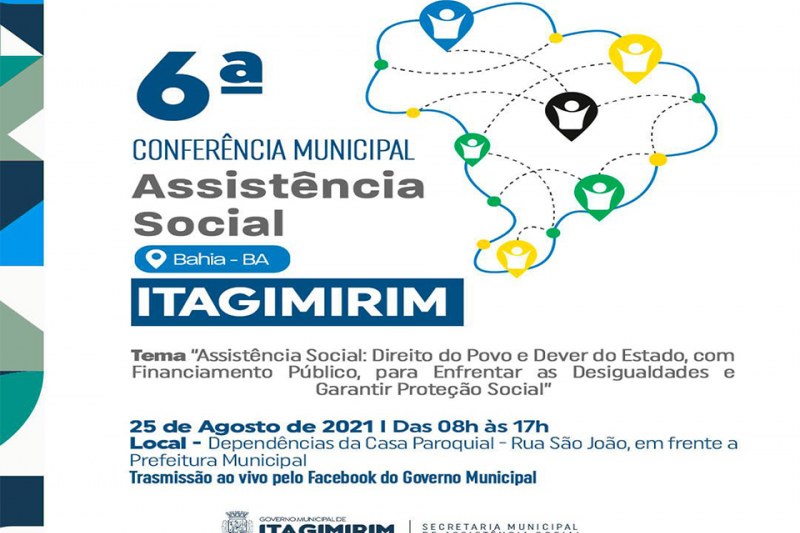A prefeitura de Itagimirim convida a população em geral para participar da 6ª Conferência Municipal de Assistência Social. O evento realizado pela Secretaria Municipal de Assistência Social é aberta ao público de forma presencial e online.