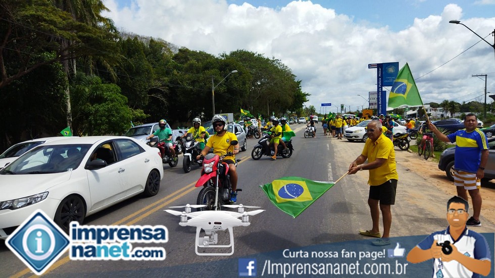 Acompanhando a manifestação, a equipe do Imprensananet.com registrou parte da 'MOTOCARREATA', a qual desceu a 'Ladeira da Rodoviária', passou pelo 'Trevo do Cabral', contornou o 'Banco do Brasil' e seguiu para a Orla Norte. Ao som do Hino do Brasil, os manifestantes entoavam 'Palavras de Ordem' contra o STF - Supremo Tribunal Federal, tais como, 'Ditadura de Toga' e 'Soberano é o Povo Brasileiro'.