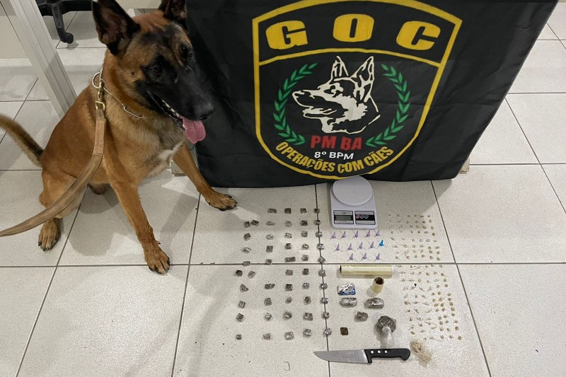 No final da tarde de hoje (10/06), Policiais Militares do Grupamento de Operações com Cães do 8° Batalhão realizavam patrulhamento na Rua Frei Coimbra, no bairro Mercado do Povo, localidade com histórico de tráfico de drogas, quando optaram por iniciar a aplicação o K9 Kabu.