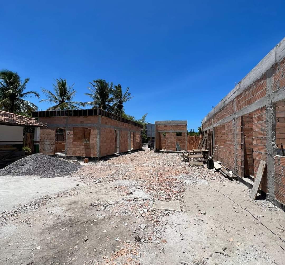 As obras de construção da nova Escola Municipal de Caraíva avançam e irão oferecer condições dignas de ensino para os alunos da comunidade. Por enquanto, férias mesmo só para os estudantes, pois os operários continuam os serviços que têm previsão de conclusão para o mês de julho.
