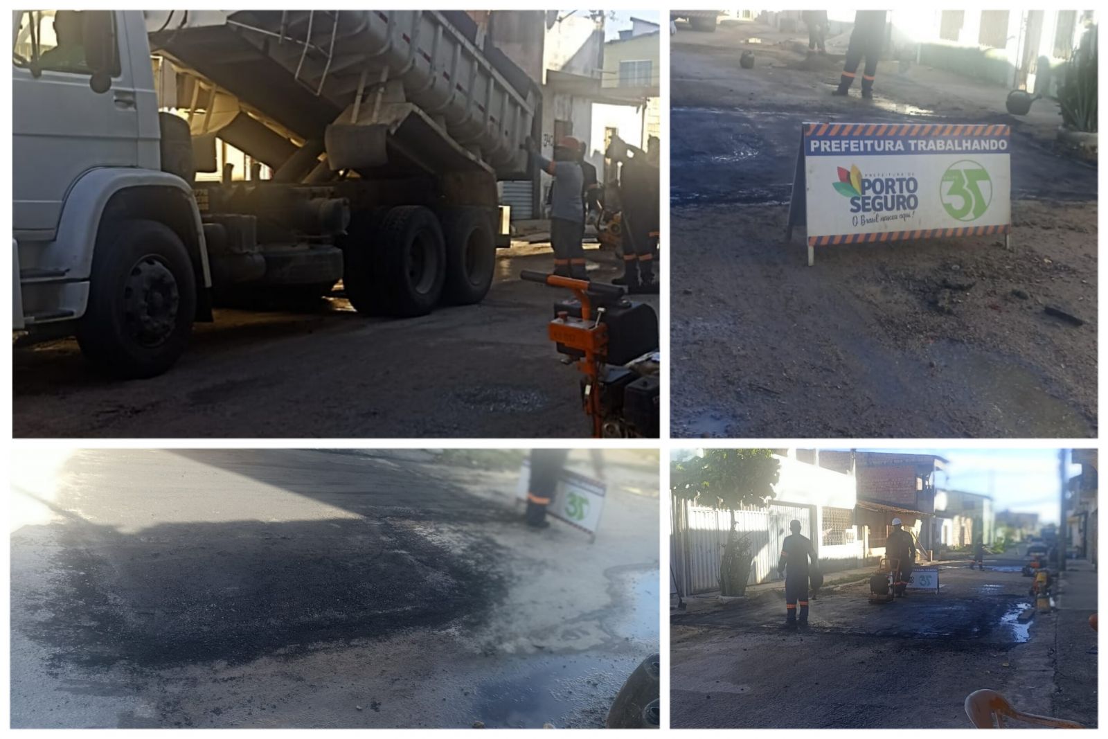 A prefeitura de Porto Seguro, através da Secretaria Municipal de Obras, segue com equipes de manutenção em operação tapa buraco nos Bairros do Complexo Baianão. Na tarde desta quarta-feira 01/03, uma das ruas beneficiadas foi a rua Bela Vista nas proximidades do Supermercado Ferrari.