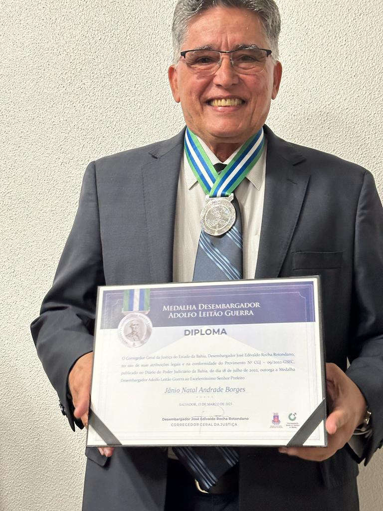 Nesta segunda-feira, 13 de março, o prefeito Jânio Natal recebeu, da Corregedoria-Geral da Justiça do TJ-BA, a Medalha Desembargador Adolfo Leitão Guerra. A medalha foi entregue pelo desembargador José Edivaldo Rocha Rotondano, no Auditório Desembargador Olny Silva, na sede do TJ-BA, no Centro Administrativo da Bahia, em Salvador.