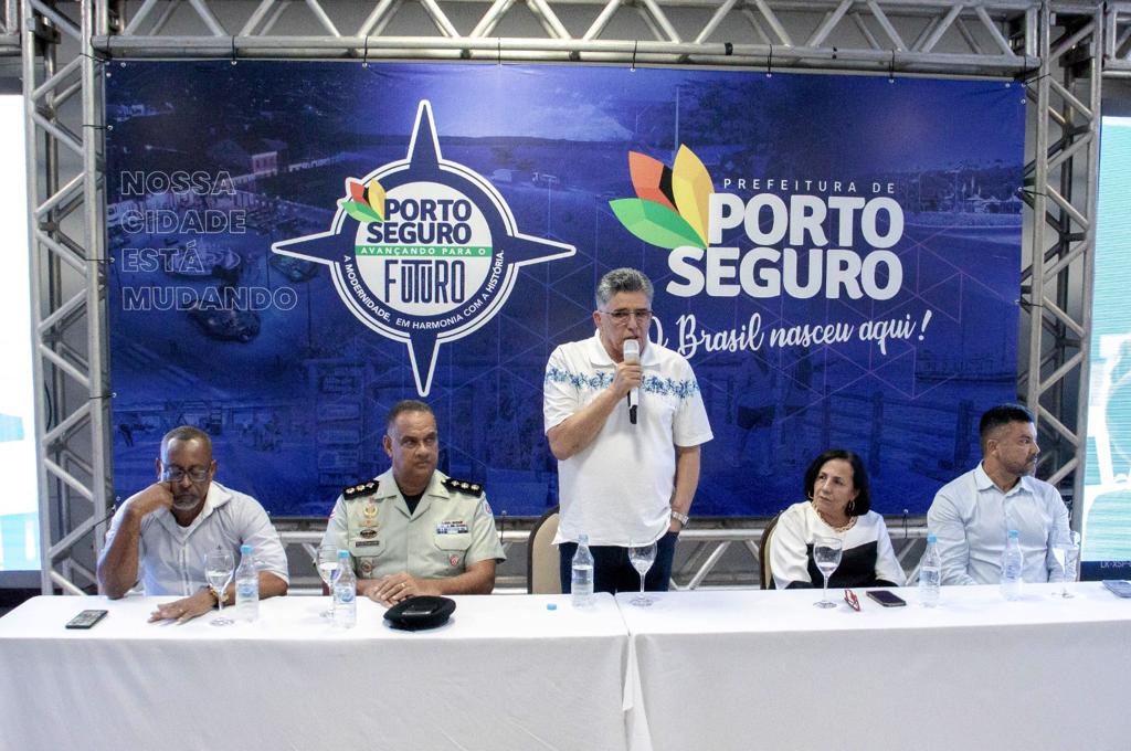 Com o propósito de discutir a questão da segurança nas escolas e também para tranquilizar a sociedade, após reiterados ataques a escolas e creches no país, amplamente divulgados nos meios de comunicação, foi realizada uma reunião para debater o assunto, no Porto Seguro Eco Bahia Hotel, situado na Cidade Histórica, no dia 17/04.